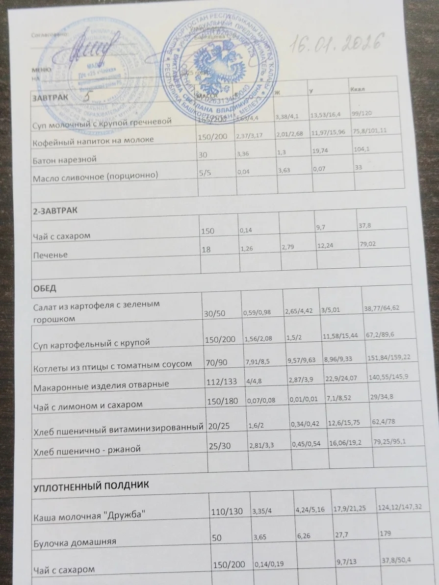 Организацию питания воспитанников в Детский сад №25 «Чайка» ведет ИП Бикташева
